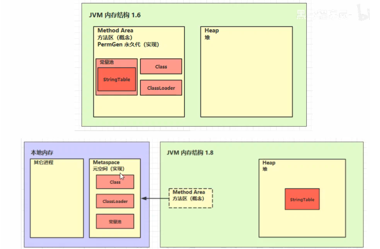 - 方法区: 类的信息,线程共享的,虚拟机启动时创建,逻辑上是堆的内存