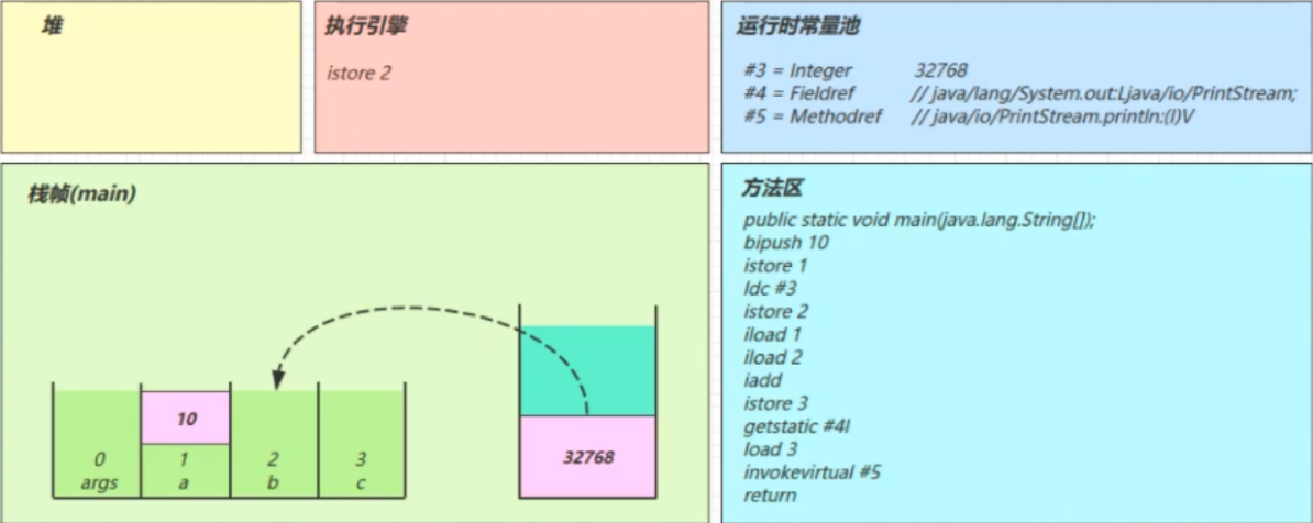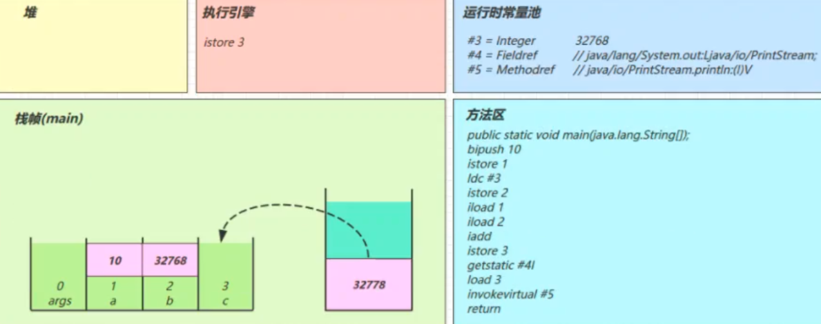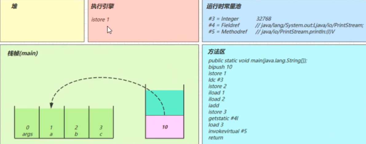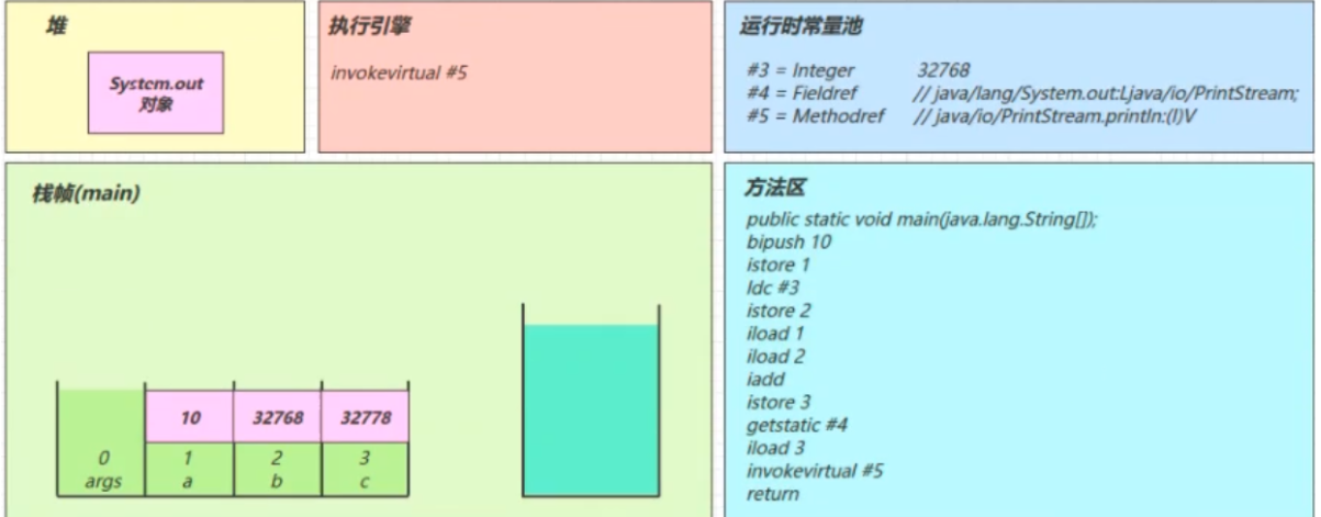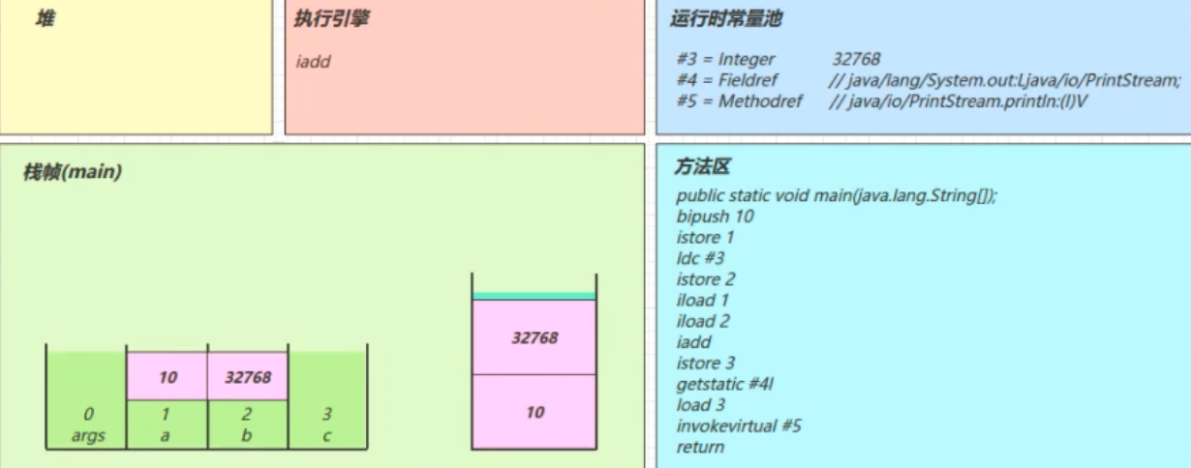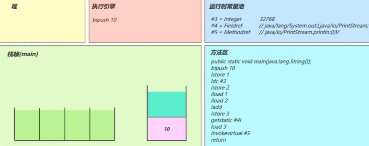 二进制字节码的组成:类的基本信息、常量池、类的方法定义(包含了虚拟机指令)