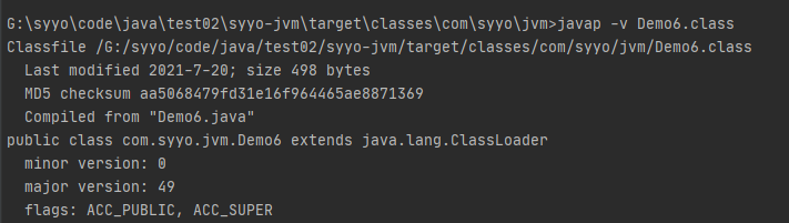 G:\syyo\code\java\test02\syyo-jvm\target\classes\com\syyo\jvm>javap -v Demo6.class1然后能在控制台看到反编译以后类的信息了