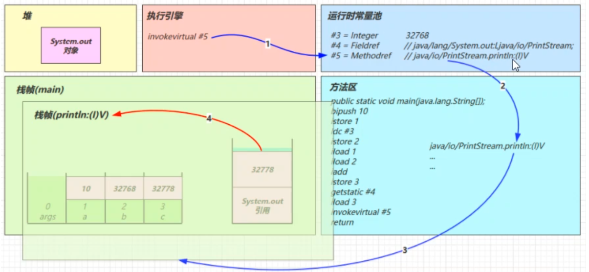 - 虚拟机栈: 线程私有,存放线程正在执行的方法(参数,局部变量,返回地址)